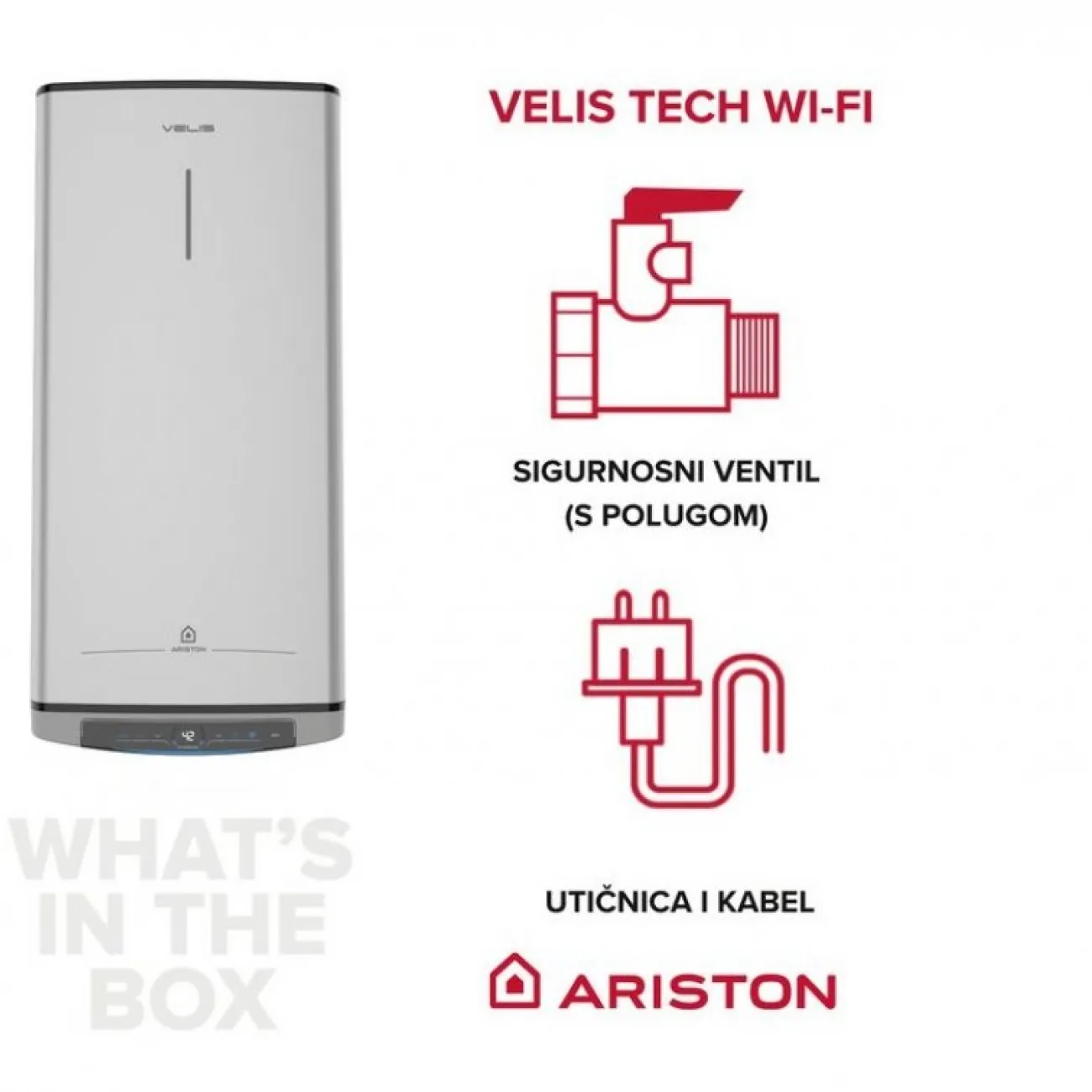 - Integrisan Wi-Fi za povezivanje sa Ariston NET aplikacijom
