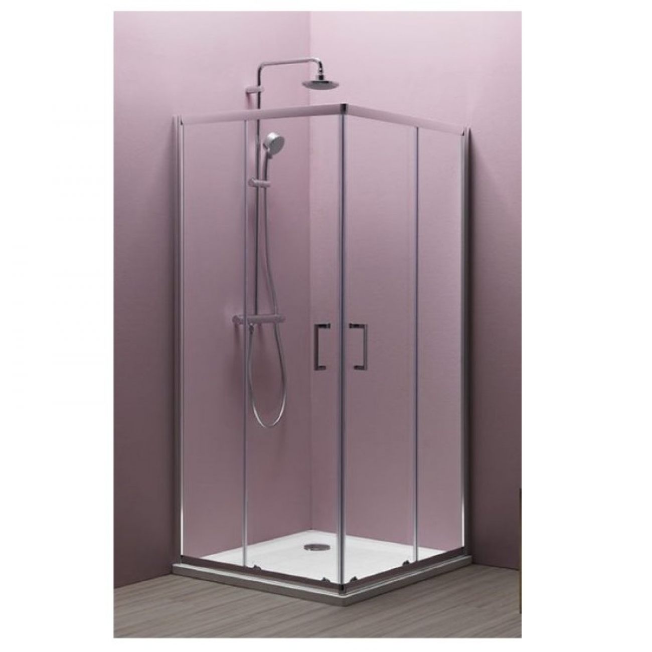 Tuš kabina sa 5 mm kaljenog prozirnog stakla i srebrnim profilom.