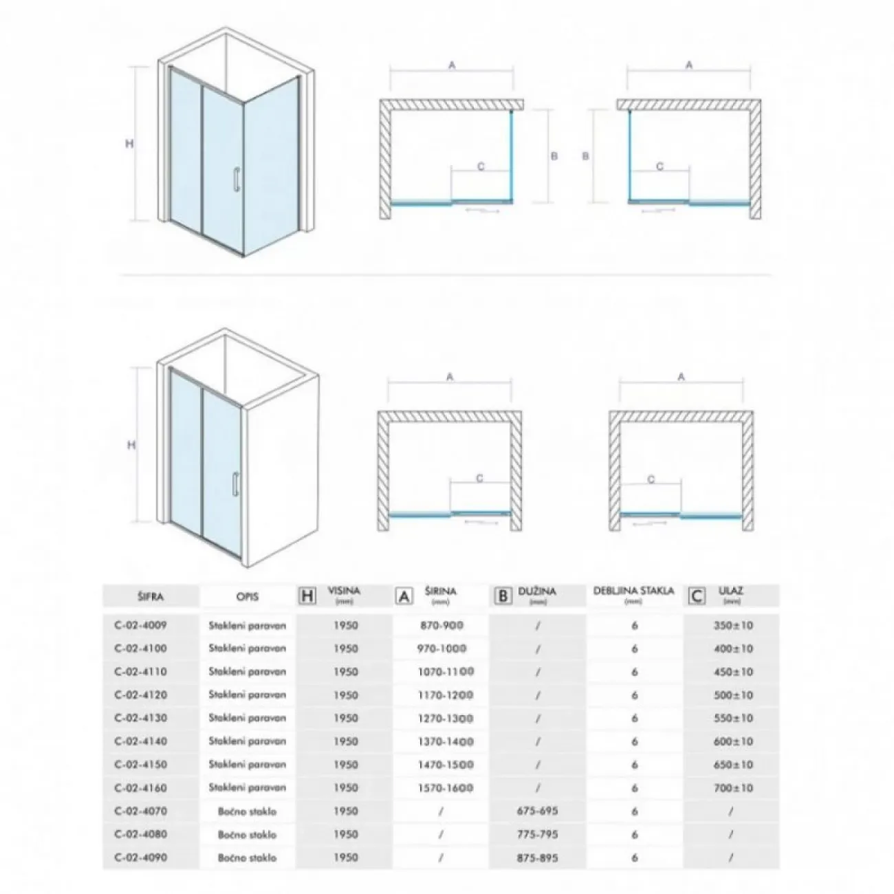 U kombinaciji sa bočnim staklom iz iste serije možete sklopiti tuš kabinu po meri. Paravani se mogu kombinovati sa bočnim paravanima ATLAS 70, ATLAS 80 i ATLAS 90
