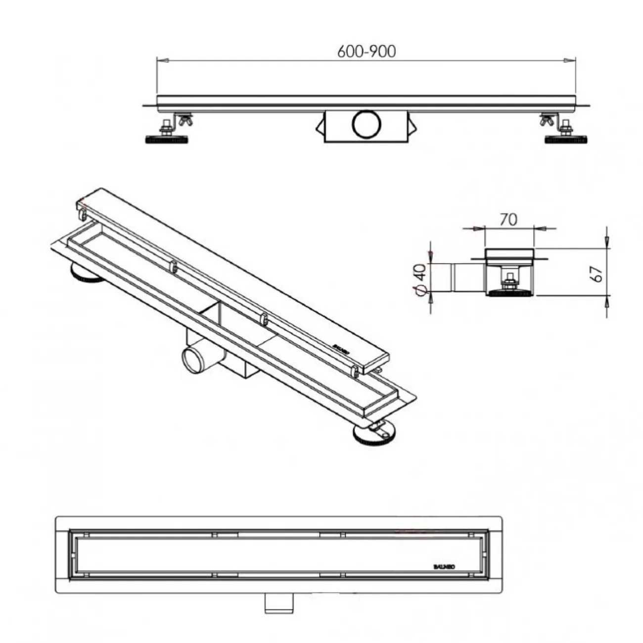 PODNI KANAL DUPLEX 70cm BLACK