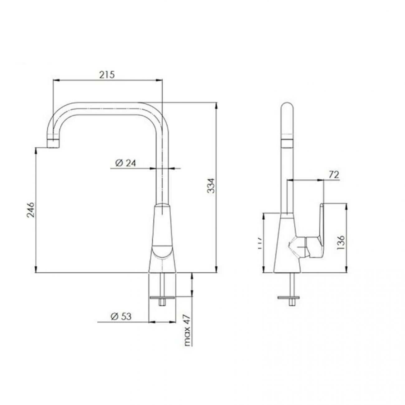 Jednoručna baterija za sudoperu sa visokim pokretnim izlivom