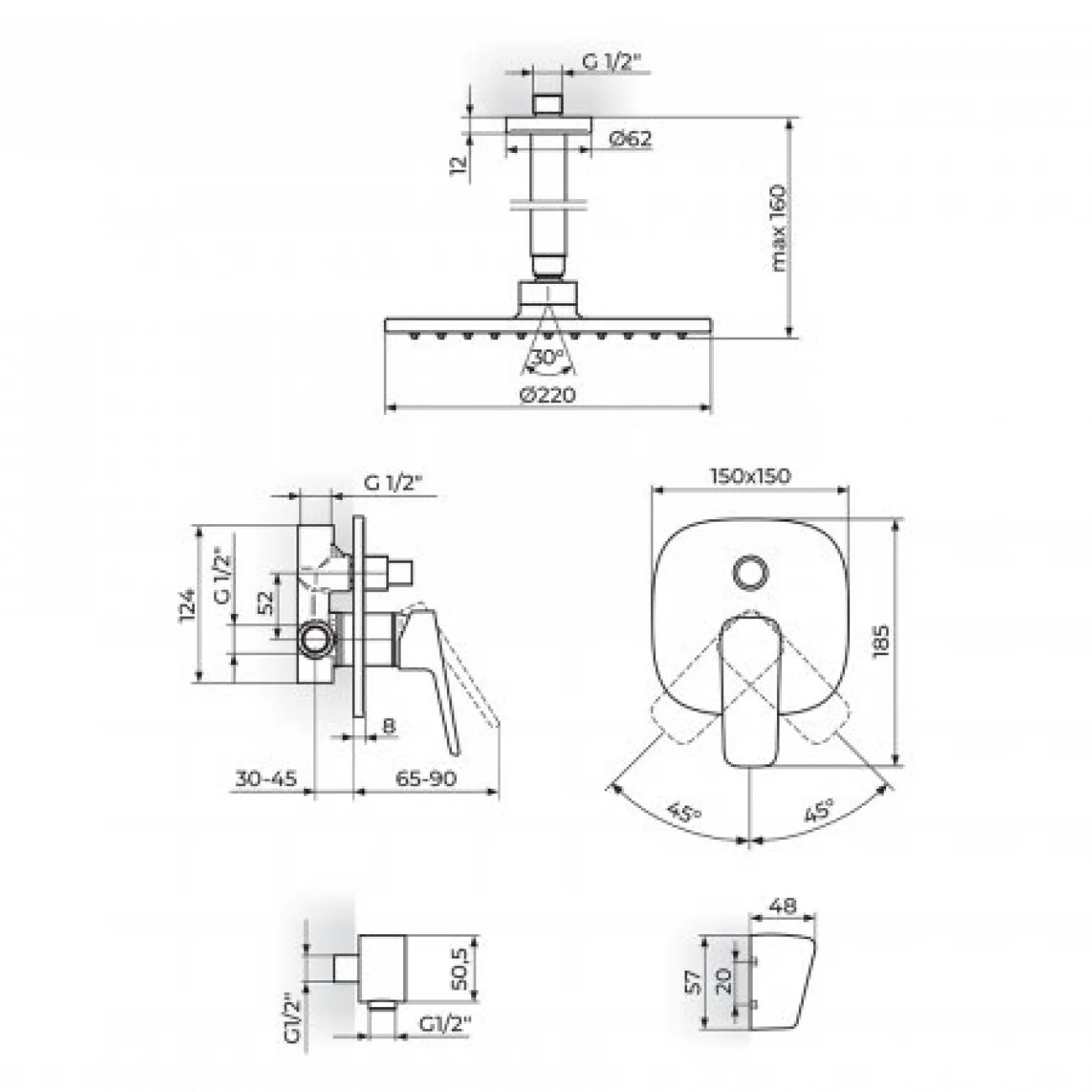 • - Tuš ruža D.220 mm sa zglobom - PTRUSP7