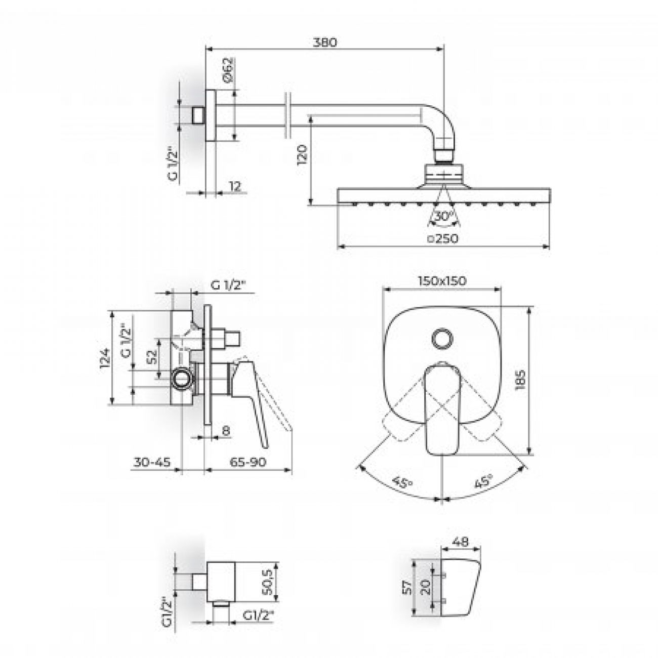 • - Tuš ruža 250x250 mm sa zglobom - PTRUSP11